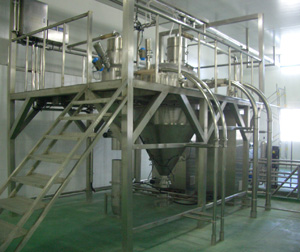 此項目包含大小袋拆包投料站,真空輸送機和稱重配料系統
