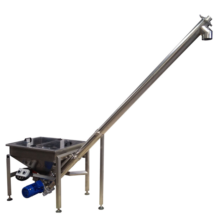 主要特點:1、全不鏽鋼材質, 經久耐用。2、上料管可配合振動料鬥實現一體式設計,使機器運轉更平穩,噪音低。3、采用卡箍固定螺杆端座,方便在拆卸時螺旋抽出,方便清洗。4、采用卡箍固定軟接口,容易裝拆,清洗,快速簡單。5、可加裝傳感器及智能控制電路,進行料位控制,自動給料或過載報警等功能。應用:柔性螺杆輸送器:産品介紹:柔性螺旋輸送器是以撓性螺旋體作爲運送構件,由電動機直接帶動旋轉而輸送物料,适用于輸送各種粉狀、顆粒狀、球狀、片狀等物料。該螺旋輸送器可以作直線輸送,也可以彎曲輸送,這種高度靈活性讓使用者非常方便地布置各種設備。